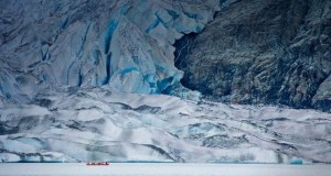 (clique na imagem e veja o “tamanho” do barco junto à geleira)
